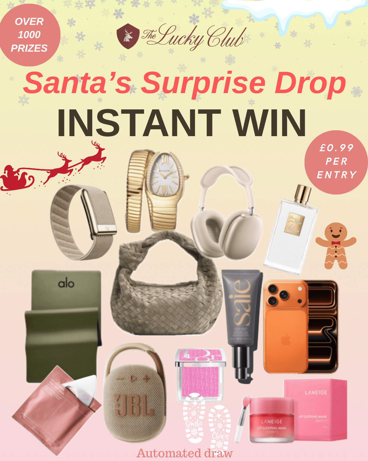 This Christmas, Santa is delivering luxury early! With over 1000 festive prizes, you can instantly win top-tier beauty, tech, fashion & self-care gifts — all for £0.99 per entry.
